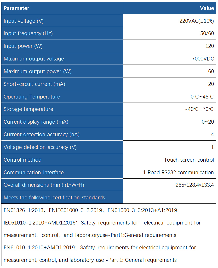 ・Current detection accuracy of 4nA ・High-voltage interlock mechanism ・Overcurrent protection function ・RS-232 serial communication